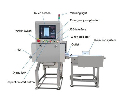 Il rivelatore di metalli Checkweigher combinato è un sistema di ispezione a raggi X avanzato e multifunzionale progettato per la sicurezza alimentare.fornire un'alta precisione e un'affidabile rilevazione di oggetti estranei nei prodotti alimentariGrazie alla sua interfaccia user-friendly e al suo funzionamento efficiente, questa apparecchiatura è uno strumento essenziale per garantire la qualità e la sicurezza dei prodotti alimentari.