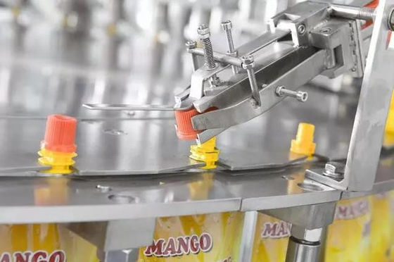 Questa attrezzatura di tappo di riempimento di sacchetto pre-fatta può riempire e sigillare sacchetti con un sistema di tappo di riempimento di sacchetto a vite.